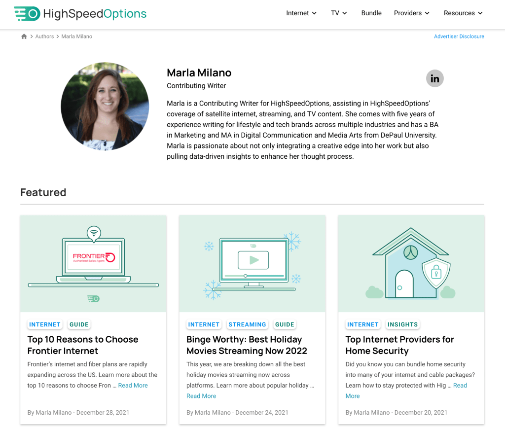 AdAction is a mobile marketing agency with a proprietary performance marketing platform and comparison websites in the cybersecurity space. During my time at AdAction, I wrote 20+ keyword-optimized blogs & landing pages each month for our cybersecurity and telecom products– AlwaysVPN and HighSpeedOptions. In addition to writing content, I helped upload & edit content in WordPress, as well as assisted in migrations and backend edits.
